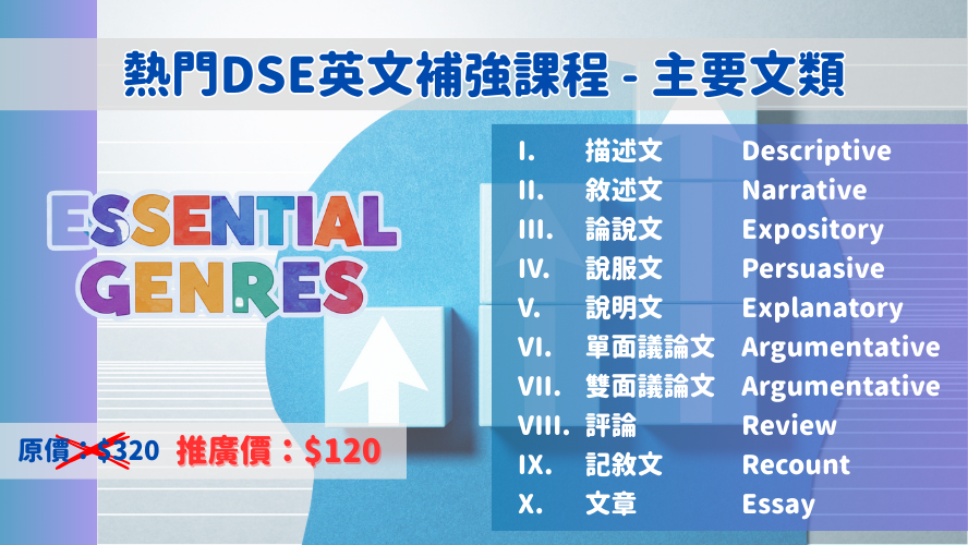 凡購買熱門DSE英文補強課程-主要文類即免費獲贈以下課程