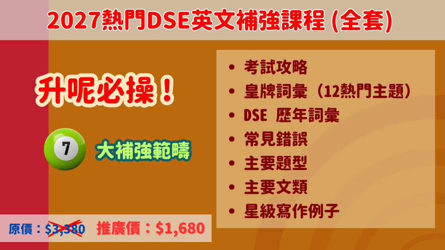 凡購買2027熱門DSE英文補強課程 (全套)即免費獲贈以下課程