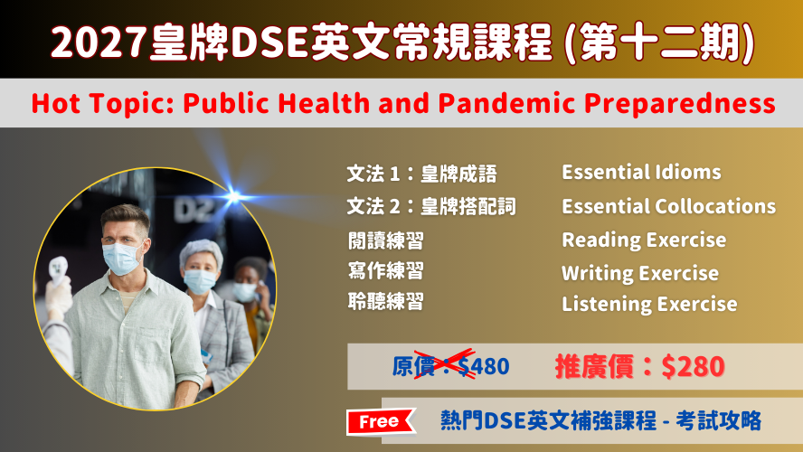 凡購買2027皇牌DSE英文常規課程(第十二期)即免費獲贈以下課程
